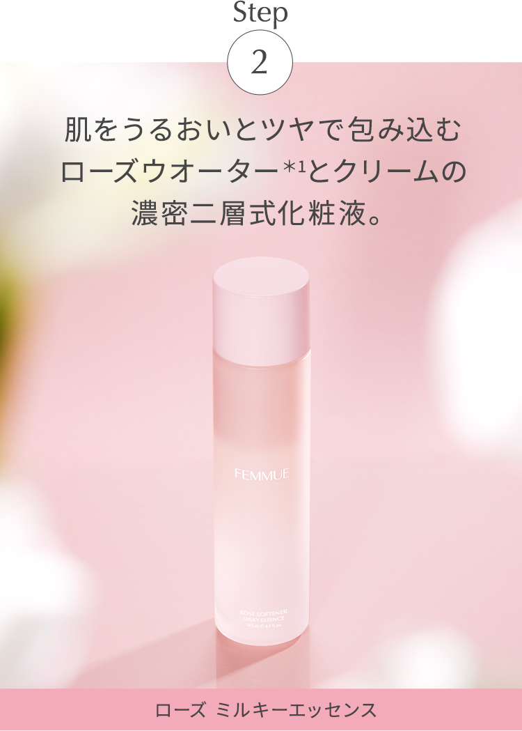 とろりと肌に密着し、さらさらと肌に溶け込む “とろさらヴェール テクスチャー”。乾燥した肌になじみ、うるおいで満たしてふっくらとした透明感のある肌に。甘く優雅なダマスクローズ*6の香り。