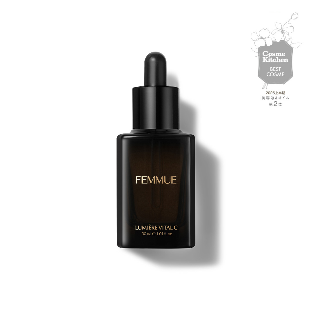 POINT.1 乾燥による毛穴の目立ちやくすみが気になる肌のために、透明感をさらに突き詰めて ビタミンCを安定化して届けるビタミンC誘導体*1と3つのツヤ成分*2という、ルミエール ヴァイタルCの主役となる成分はそのままに、透明感を追求して成分の種類や量を選定。より多角的に透明感へアプローチできるスペックとなりました。 透明感:うるおいを与えて透明感をもたらす *1 アスコルビルグルコシド/整肌成分 *2 サフラワー油、ビサボロール、トコフェロール/すべて保湿成分 透明感のある肌に導くエレメント ●ビタミンC誘導体*1 ビタミンCを安定化して肌に届ける、「ルミエール ヴァイタルC」の主役となる成分。 ●ナイアシンアミド*2 ビタミン B3。美容のオールラウンダーとも呼ばれ、キメの整った透明感を与えます。 ●Made Snow(マデカッソシド) 肌をおだやかに整え、みずみずしい状態をキープ。 ●バクガエキス*3 発芽した大麦粒から抽出された天然の保湿成分。美しくなめらかな肌をサポート。 ●3つのツヤ成分(サフラワー油*3、ビサボロール*3、トコフェロール*3) 肌になじみがよく、肌に不足しがちな油分をプラスしてうるおいを与えます。 透明感:うるおいを与えて透明感をもたらす *1 アスコルビルグルコシド/整肌成分 *2 整肌成分 *3 保湿成分