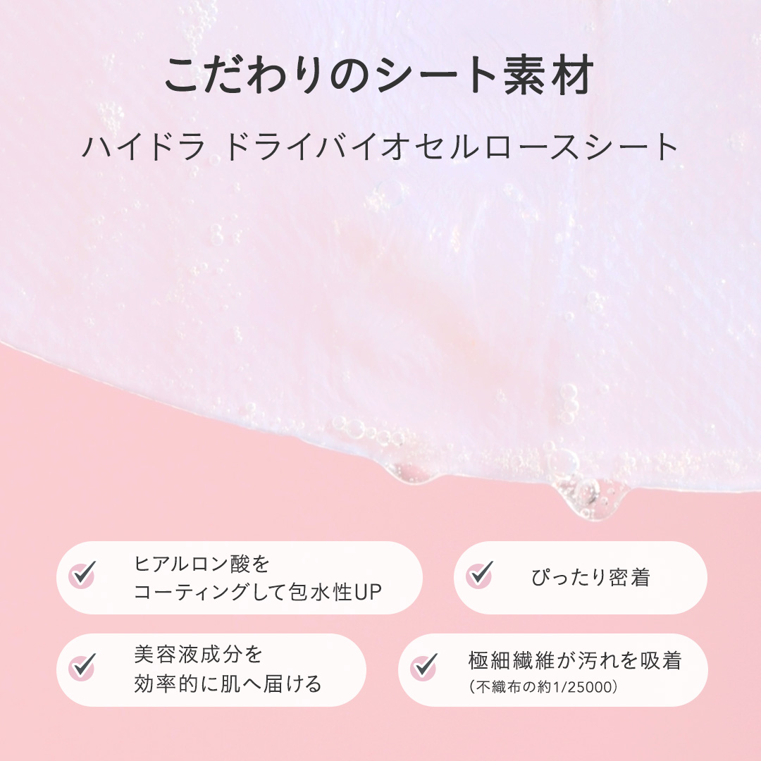 ITEM.5 ドリームグロウマスク HR(保水・保湿)32mL×1枚 インナードライ肌をさらっとべたつかせずに保湿するシートマスク。 水分と油分をバランスよく肌へ*1届けるため、分子サイズの異なる8種類のヒアルロン酸*2とボタニカルマイクロオイル*3を配合。角層のすみずみまでなじみ、肌表面をべたつかせることなく肌をやわらかく整え、しっとりとしたうるおいを補います。 さわやかなフレッシュハーブの香り。 インナードライ:角質層の乾燥 *1 角質層まで *2 ヒアルロン酸Na、ヒアルロン酸ヒドロキシプロピルトリモニウム、アセチルヒアルロン酸Na、加水分解ヒアルロン酸、ヒアルロン酸、ヒアルロン酸クロスポリマーNa、加水分解ヒアルロン酸Na、ヒアルロン酸K/すべて保湿成分 *3 カノラ油、ヒマワリ種子油、メドウフォーム油、アルガニアスピノサ核油/すべて保湿成分